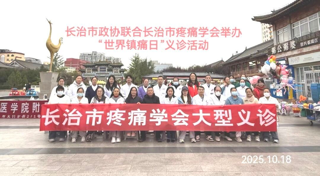 2025年10月18日—20日,由我院疼痛科牵头的“世界镇痛日——中国镇痛周”系列义诊活动先后于长治市城隍庙、和平医院门诊大厅开展。本次活动不仅得到了长治市政协、长治市疼痛学会的高度认可与大力支持,更汇聚了长治医学院附属和济医院、长治市人民医院、李新如骨科医院等长治地区疼痛医学领域的优质资源,普及疼痛知识,提供优质医疗服务质量,助力人民群众提升公众疼痛管理意识。