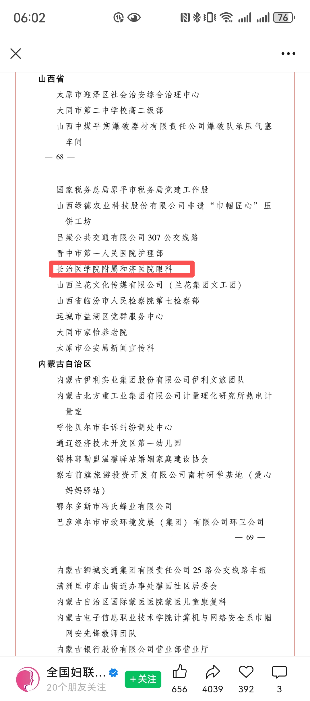 瑞雪兆丰年,荣光启新程。此次荣获“全国巾帼文明岗”,是鼓励,更是新的起点。和济医院眼科全体医护人员将以此为动力,继续坚守医者初心,厚植医学人文,锤炼精湛医术,传承巾帼担当,以更高标准、更优服务、更实举措守护人民群众眼健康,为医院高质量发展注入强劲动力,为三晋百姓带来更加清晰、明亮、温暖的光明未来。